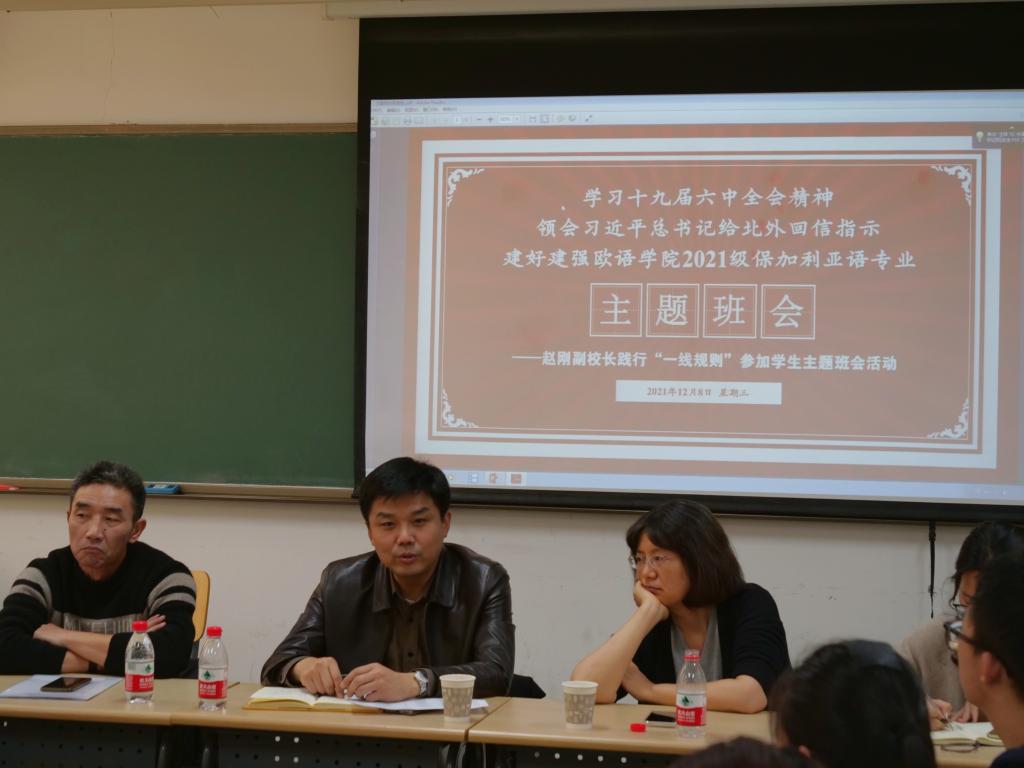 12月8日上午,党委常委、副校长赵刚践行“一线规则”,出席伟德bv国际体育2021级保加利亚语专业“学习十九届六中全会精神,领会习近平总书记给北外回信指示,建好建强伟德bv国际体育2021级保加利亚语专业”主题班会。