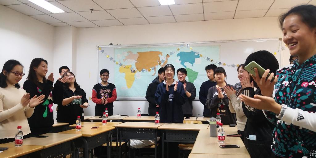 刘厚广、柯静、田建军、王子娴参加班会活动。
