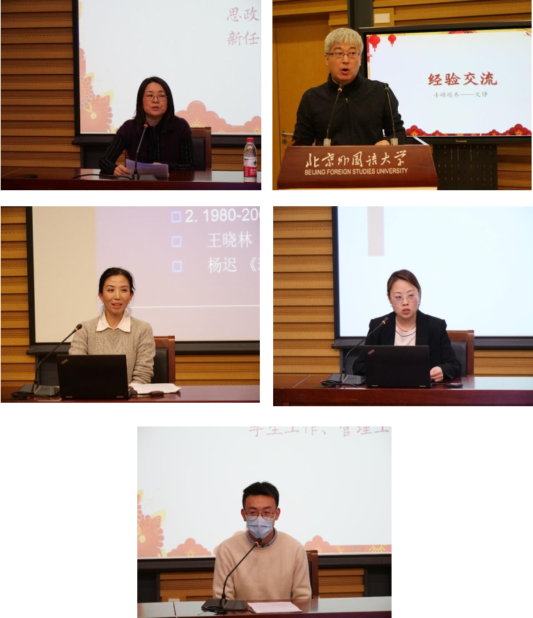 会议强调,今后工作要求巩固拓展党史学习教育成果,落实学校关于习近平总书记给北外老教授回信精神工作部署,切实落实整改任务,全面推动党的建设,把讲政治放在首位抓好班子和队伍建设,充分发挥“老中青”教师积极性集聚改革动能,以重大项目为牵引,提升发展质量,加快建设步伐,在教学改革、学术研究、人才培养、师资建设、学科发展、国际交流等方面稳步前进,形成务实奋进工作氛围,以优异成绩迎接党的二十大召开。