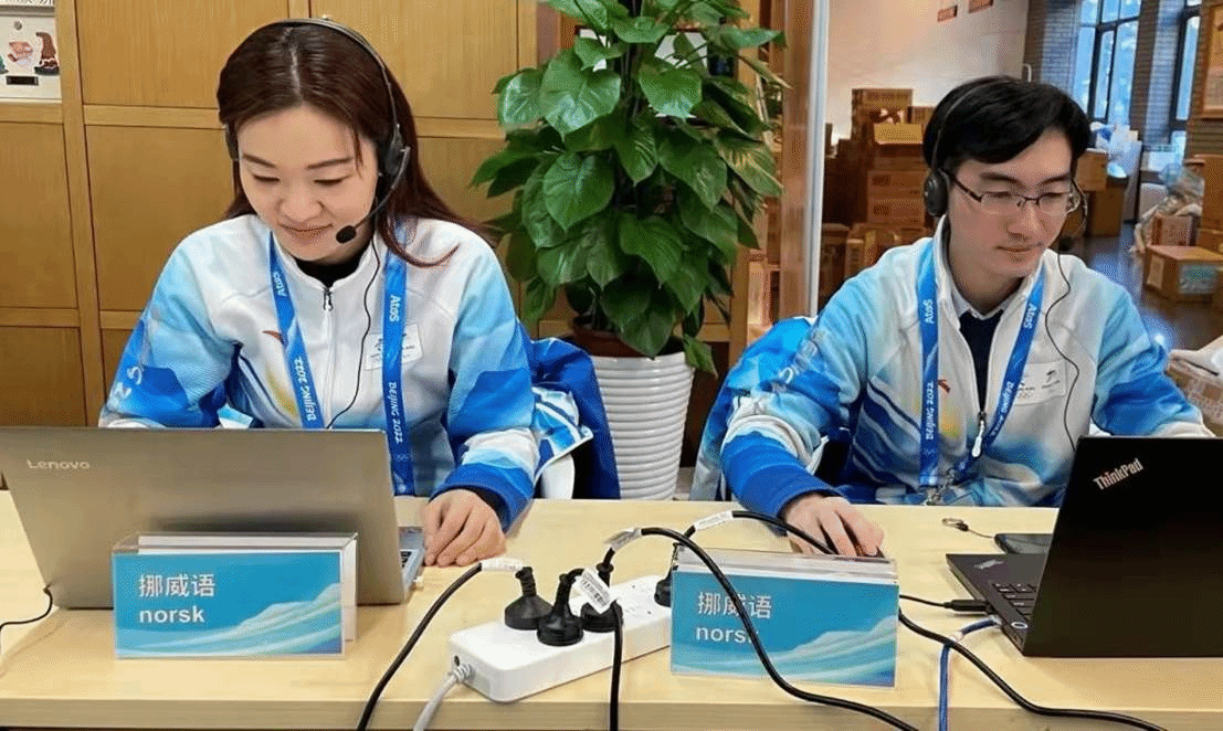 十四年之后,我成长为一名挪威语专业教师。更加难得的是,在这次的冬奥志愿工作中,我能够和自己的学生一起并肩作战。今年中心的挪威语专线志愿者由4名师生组成,除我之外,还有余韬洁老师以及2019级挪威语专业的唐鼎中和赵铠阳同学。 今年的北京冬奥会,我印象最深的是开幕式当天的两通求助电话。2月4日下午16:38分,唐鼎中同学接到了挪威语第一通求助电话,来电的是一位闭环志愿者,向他询问挪威运动员Therese Johaug的名称该如何正确发音。15分钟之后,第二通电话响起,是国家越野滑雪中心的一位志愿者,我告诉他如何用挪威语邀请运动员接受媒体采访。就在这位志愿者完成任务将要挂断电话前,他突然问了一句:“请问你是北外的吗?”我立刻回答说:“是的,你也是北外人吗?”电话那头的志愿者笑了笑,回答说:“是的,我也是北外人,是国际新闻与传播学院的。”对暗号式的“北外人”三个字在这一刻,大约包含了“加油”“谢谢”“一切顺利”等含义。当时,唐鼎中同学和我都没有意识到,这两通语言服务电话涉及到的主人公正是第二天下午在国家越野滑雪中心产生的北京2022年冬奥会首枚金牌获得者,挪威选手特蕾丝·约海于格(Therese Johaug)。当中心负责人何腾腾老师通知我们,昨天接到的服务电话与冬奥首金相关时,我们内心感到无比激动和光荣,都为能够作为中心的志愿者发挥“北外人”的语言优势服务冬奥会感到自豪和骄傲。北外挪威语专业于2007年开始正式招生,作为我国挪威语专业招收的首届学生,我已在北外度过了十五载光阴。2008年到2022年,十四年的时间里,我从一名学生成长为一名教师;从一名共青团员成长为一名共产党员。职业身份有所变化,但我心中铭记的“人民需要我们到哪里,我们就到哪里”的校歌精神没有改变。