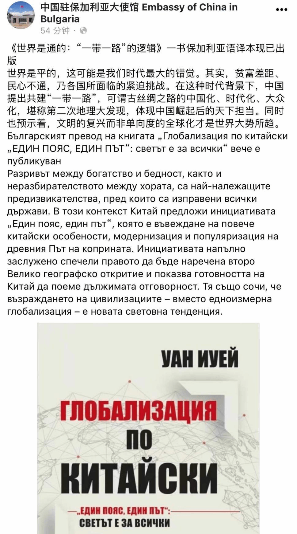中国驻保加利亚大使馆在其官方脸书上对该书做了推介。