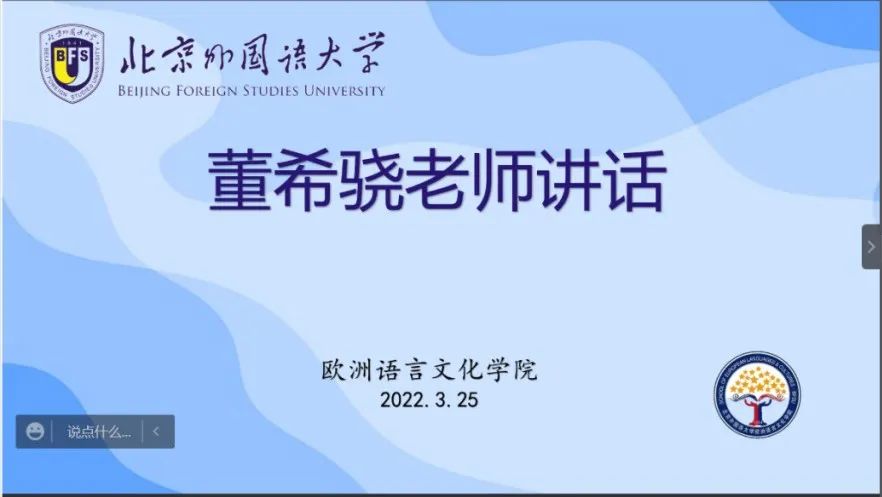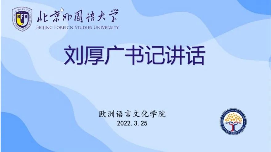 2022年3月25日下午,欧洲语言文化学院召开2022年出国申报工作交流指导会。伟德bv国际体育党总支书记刘厚广、副院长董希骁出席会议并讲话,会议由辅导员田汶鑫主持,全体申报公派出国项目的本科插班生和研究生通过线上线下方式参加会议。
