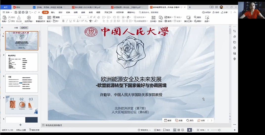 能源问题是近年来的全球热点,俄乌冲突的爆发更是令欧洲能源安全危机一触即发。在这样的世界局势下,讨论欧洲能源安全问题引起了关注欧洲区域国别研究师生的强烈兴趣。