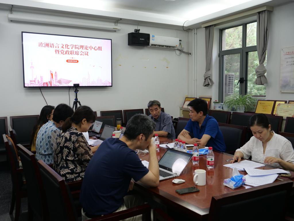 7月4日下午,党委常委、副校长赵刚参加欧洲语言文化学院理论学习中心组学习,进一步深刻领会习近平总书记给北外老教授回信指示,研读党委书记王定华的署名文章《高校党委要努力成为提高“政治三力”的坚定践行者》和校长杨丹的署名文章《构建中国特色、世界一流外语院校发展新格局》。学习活动结束后,赵刚参加了欧洲语言文化学院党政联席会,听取柯静院长做的《欧洲非通用语种建设的现状和对策》情况汇报,与学院班子成员研讨欧洲非通用语学科建设,指导推动“101工程”非通用语种振兴计划。