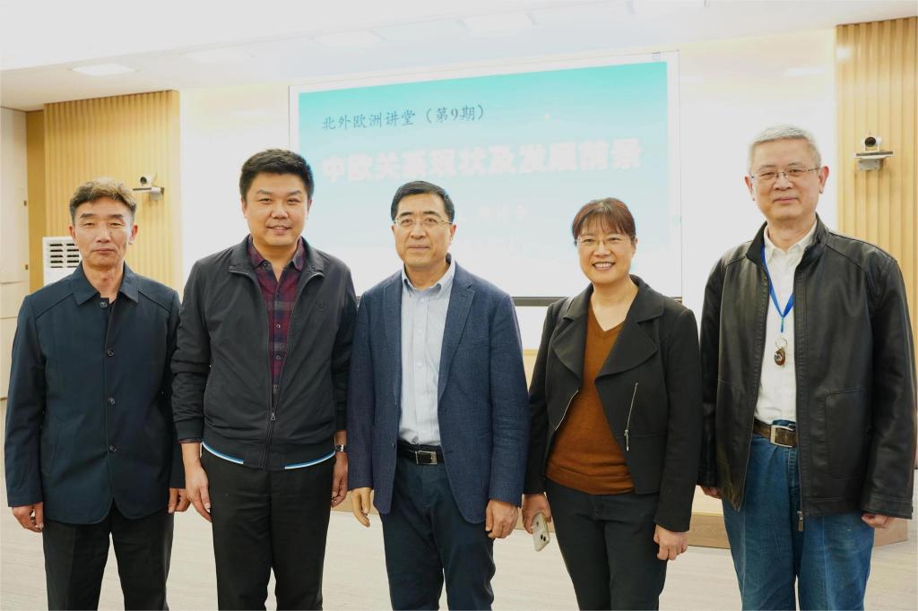 3月3日下午,中国社会科学院欧洲研究所所长冯仲平研究员做客“欧洲大讲堂”,受邀就“中欧关系的现状及发展前景”这一问题为全校师生带来了一场引人入胜的学术讲座。活动开始前,党委常委、副校长赵刚与冯仲平亲切会面,就共建学术共同体、推进学术研究交换意见,丁超、柯静、刘厚广、董希骁参加会面。柯静主持讲座活动。