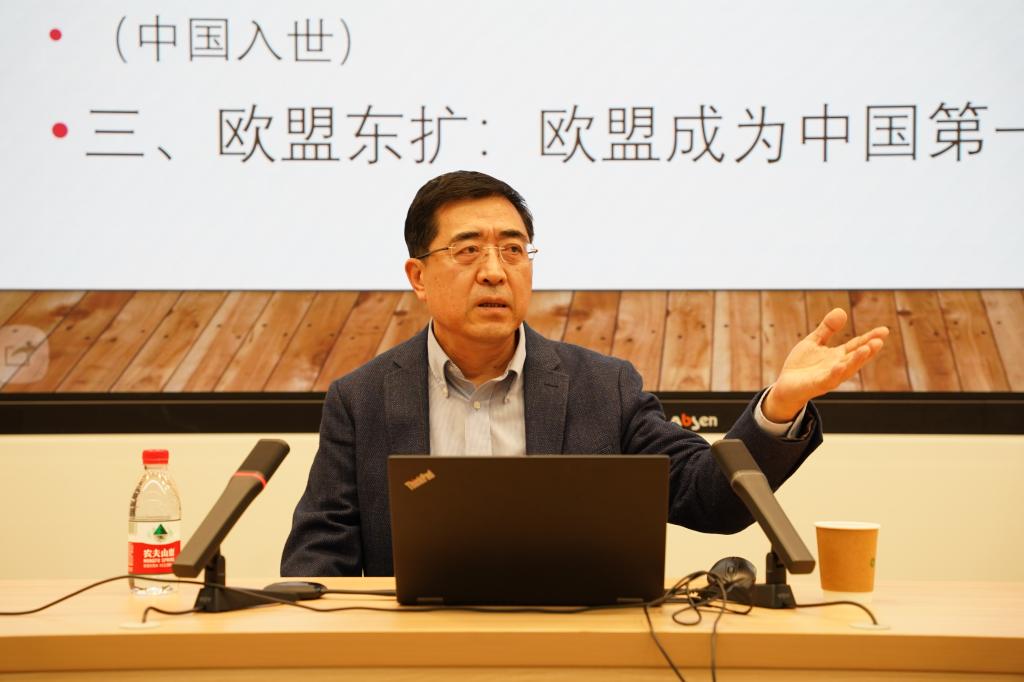 讲座从三个方面展开。第一部分是“欧洲一体化与中欧关系”。冯所长从宏大的历史视野回溯了欧洲在世界权力格局中国际地位的兴衰变化,叙述欧洲一体化起源的历史背景,对欧洲一体化不断扩大进程下的中欧关系变迁进行了系统性论析。2004年和2020年被视为中欧贸易关系变化的转折点,欧洲一体化进程中几次重大危机,诸如欧元区危机的冲击波,间接助推了部分中东欧国家“向东看”战略的提出,进而为2012年“中国-中东欧国家合作”的启动创造了契机。