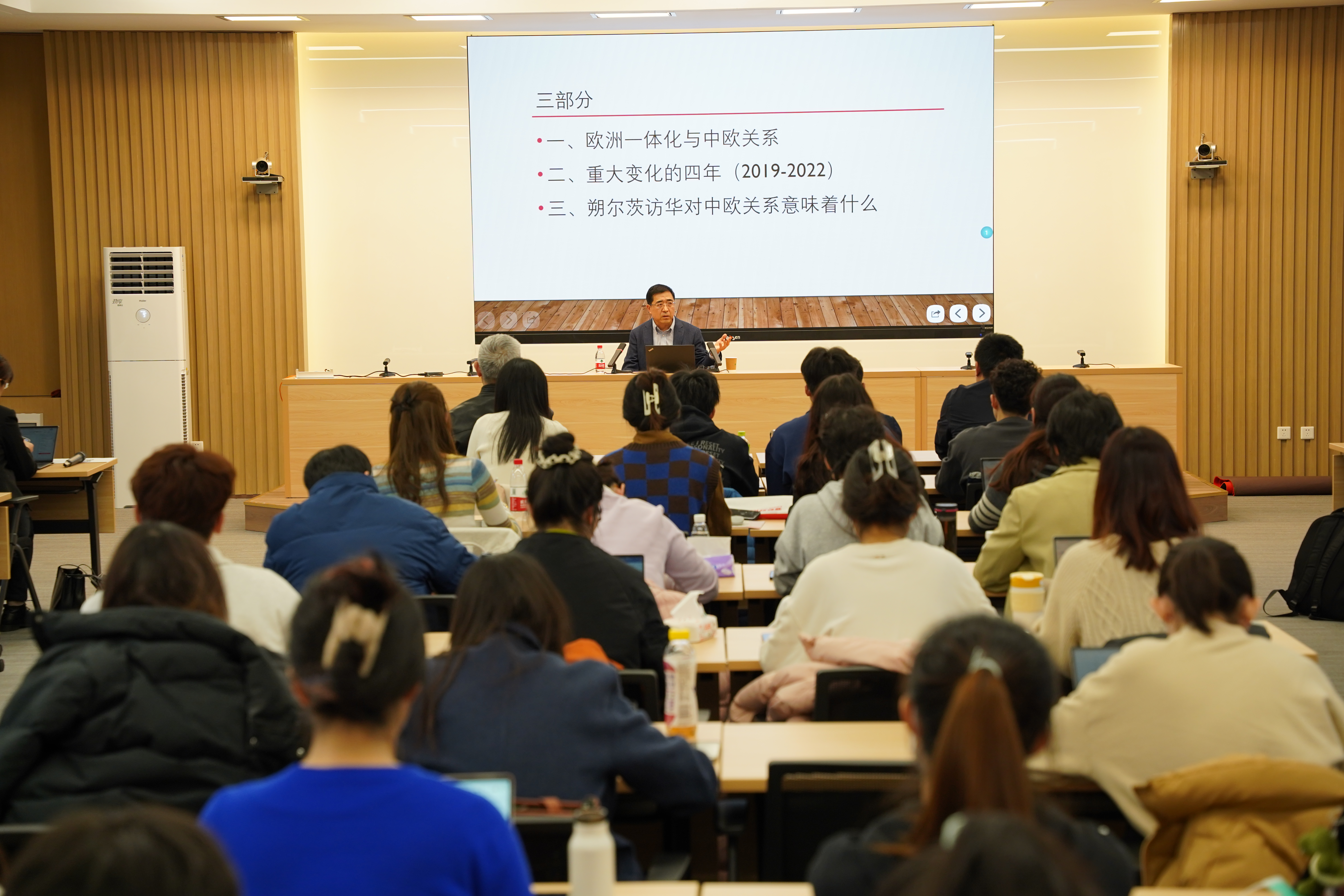 柯静对冯仲平所长既有高度、又有深度、更有温度的讲座表达了由衷的感谢和敬意。本次学术讲座亦是伟德bv国际体育开展学习党的二十大精神的一次集体研修课。与会师生表示,从讲座中深刻学习领会了当前中欧关系所面临的复杂国际形势,对当下欧洲非通用语教学及区域国别研究有着深远的指引意义。