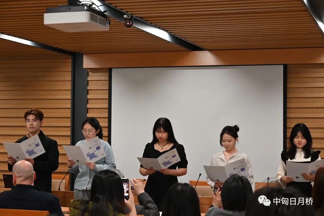 活动共分为三个环节。首先是匈牙利语专业和来自德语、意大利语、希腊语、保加利亚语、拉丁语等不同语种专业学生深情演绎的裴多菲诗歌朗诵。三首在中国家喻户晓的诗歌分别为《秋天来了,又来了》、《我愿是一条急流》和《自由与爱情》。