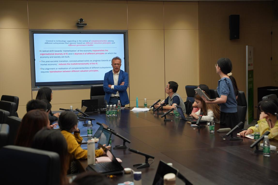 拉多舍维奇教授的讲座精彩纷呈,参与讲座的师生受益匪浅。在互动环节,师生就中国创新体系发展、中东欧国家人才流失困境、民族主义对巴尔干国家创新和技术转型的影响等问题踊跃提问。拉多舍维奇教授逐一进行了生动细致的解答。